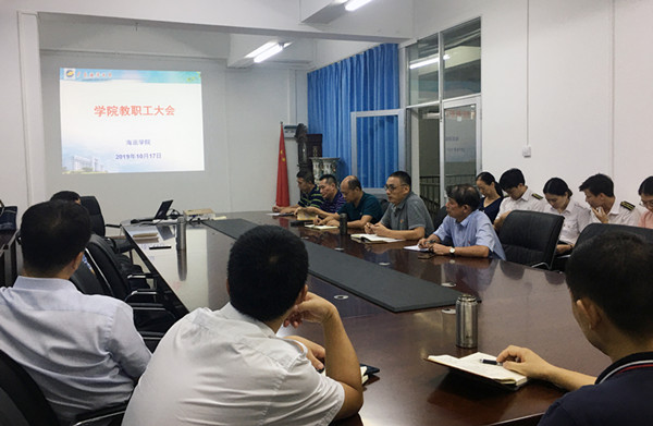 为把“不忘初心、牢记使命”主题教育落到实处,贯彻“守初心、担使命,找差距、抓落实”总要求,推动学院的各项工作顺利开展,10月17日晚上,我院在海滨校区实验楼202室学院会议室召开学院中层干部及党支部书记工作汇报会。学院党政领导、全体教职工参加了会议,会议由学院党委书记张懿主持。