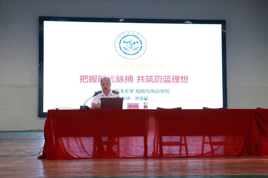 新生见面会后,张懿、贾宝柱、齐昊、李荣辉围绕“大学是什么”“为什么读大学”等分别以《做有理想、守纪律、有作为的新时代大学生》《把握时代脉搏 共筑蔚蓝理想》《崇德尚学,励志笃行,勇做堪当大任的时代新人》《夯实专业基础,共筑海洋强国梦》为主题给新生开展入学教育“思政第一课”。