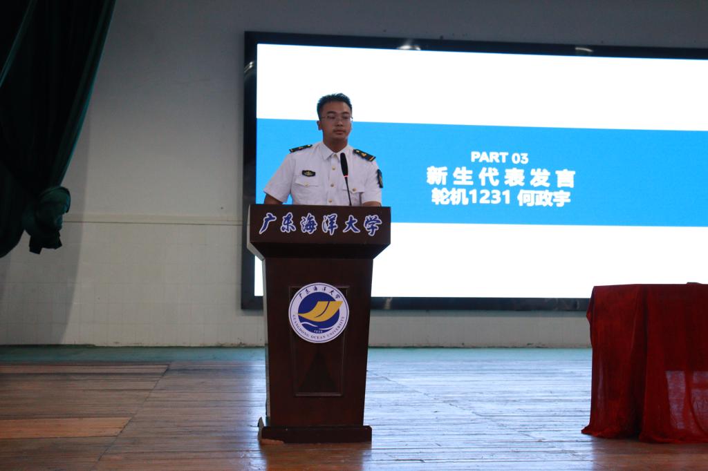 大会在庄严的国歌声中拉开帷幕。首先,在校本科生代表冼国良发言,他结合自身的成长经历给新生分享了专业学习、参加社团活动等方面经验,并鼓励新生要勇于面对大学的新环境,敢于追求梦想,让大学成为生命中最精彩的一页。