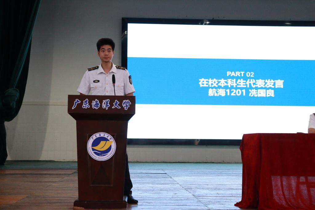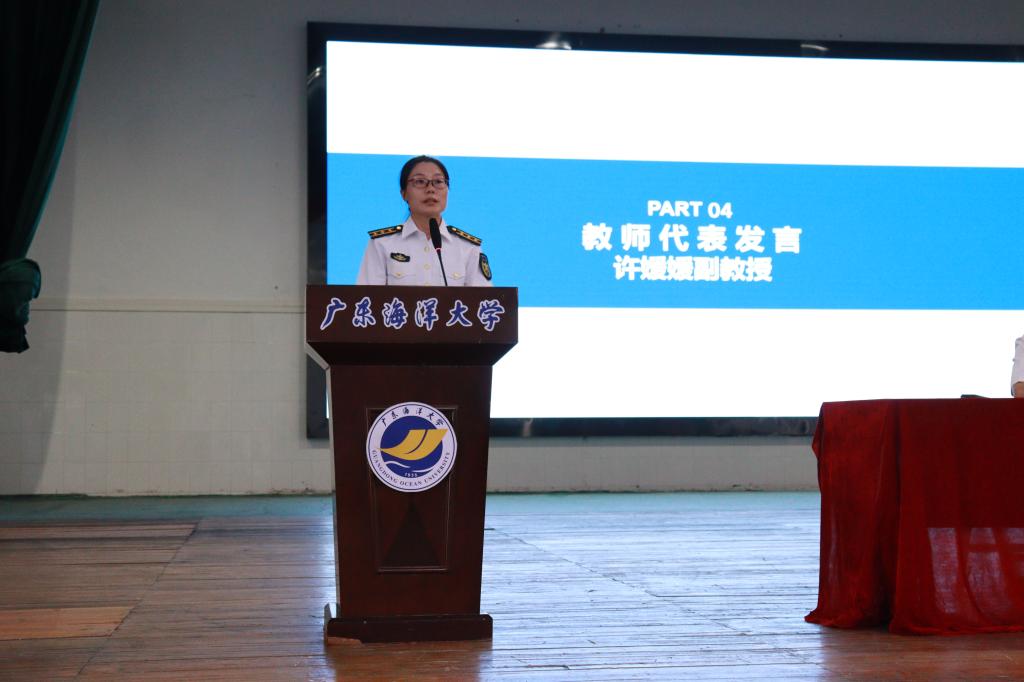 随后,教师代表许媛媛发言,她希望同学们树立远大的人生理想,学海爱海,主动担负起“海洋强国”“交通强国”国家重大战略部署的责任,并提醒同学们要珍惜在学校的每一分、每一秒,为实现理想努力奋斗。