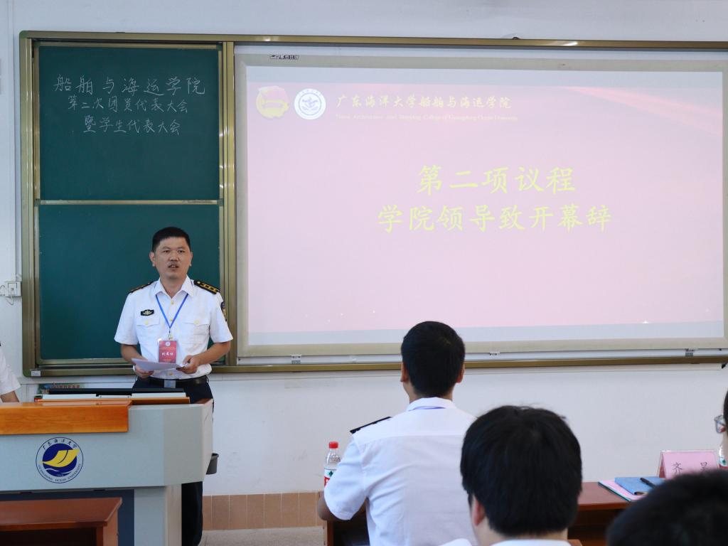 齐昊为大会致开幕词,他代表学院党委向大会的召开致以热烈的祝贺,并回顾了近一年来学院团委学生会取得的工作成绩。强调学院团委、学生会要以时不我待的紧迫感和重任在肩的责任感,始终注重培养过硬的工作作风,大力发扬“特别能吃苦、特别能战斗、特别能创造”的精神,不断增强引领力、组织力和服务力,团结带领学院广大青年学生努力成长为“有理想、敢担当、能吃苦、肯奋斗”的新时代船海好青年,在学院学风建设、安全稳定、校园文化建设中充分展现团学干部的使命担当。