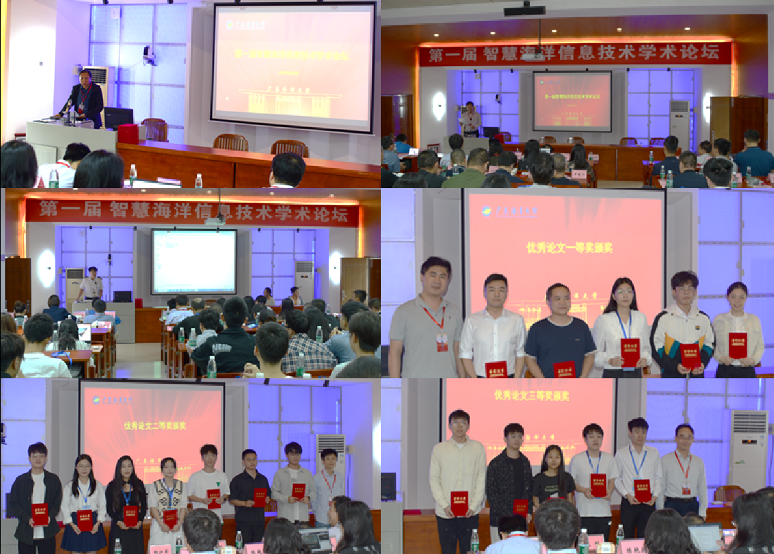 徐进老师主持了开幕式和专家报告,简纪常院长与李荣辉副院长对论坛进行致辞。本届论坛共收到来自中国海洋大学、大连海事大学、大连理工大学等15所高校与科研院所研究生投稿118篇。经过专家评审,高佳乐等8名同学获得优秀论文一等奖、张钰颖等13名同学获得优秀论文二等奖、罗方焰等15名同学获得优秀论文三等奖。师文庆副院长、郑少军副院长、徐青副院长分别上台为获奖者代表颁奖。