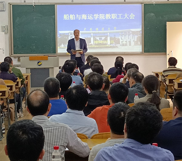 在海滨校区教学楼101室召开全院教职工大会,学院党政领导及全院教职工参加会议,会议由学院院长贾宝柱主持。