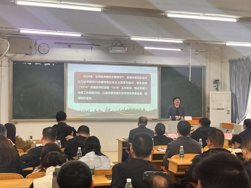 党委书记邓朝晖回顾了学院党委2024年党建工作取得的成果,通报了学校党委组织部2024年度抓基层党建工作述职评议考核结果,并对2025年党建工作重点进行详细部署。她强调,2025年工作要“以党建‘双创’为抓手深入推进党建业务融合”为重点,不断加强干部队伍建设和干部能力提升,以高质量党建引领学院高质量发展。会议还对全面从严治党、党风廉政建设和反腐败工作进行安排部署,对开展深入贯彻中央八项规定精神学习教育进行动员。