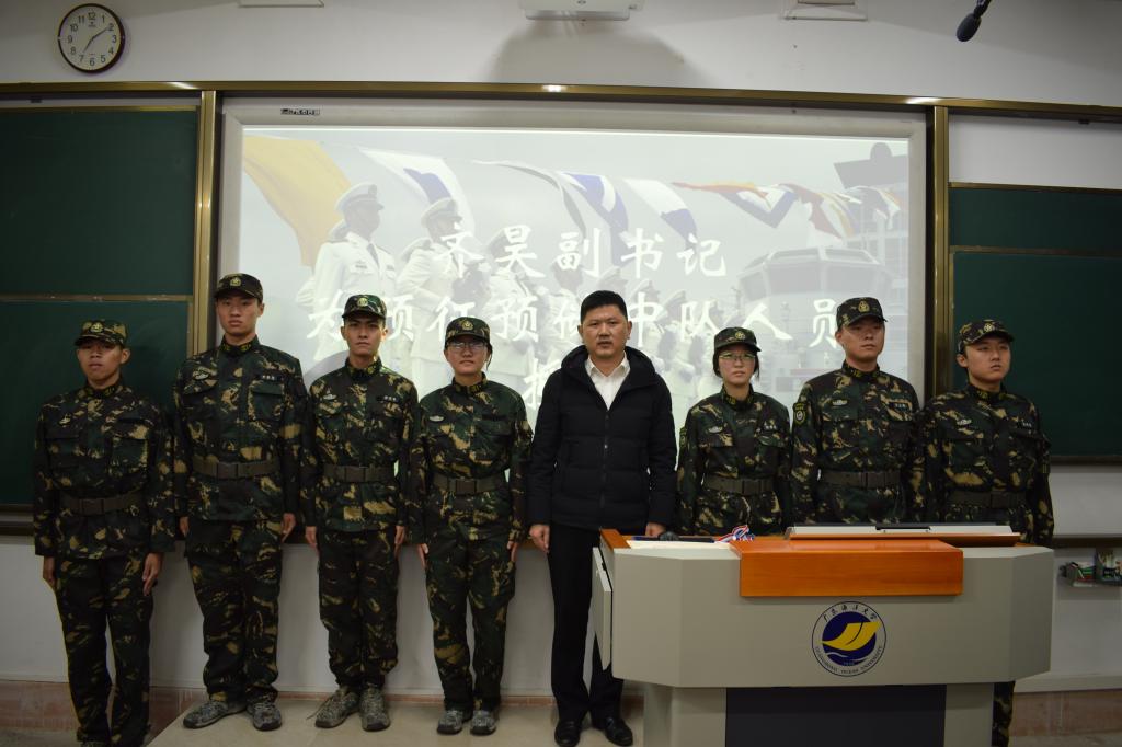 大学生精准征兵试点工作,激发同学们参军热情,引导学院毕业生积极投身国防和军队建设,12月20日晚,学院在海滨校区实验楼308室组织“船海预征中队”授衔仪式暨学院征兵宣传会,学院党委副书记齐昊、半军管副大队长江涛、船海中队全体人员及志愿入伍毕业生60余人参加活动,活动由学院半军管副大队长刘抒睿主持。