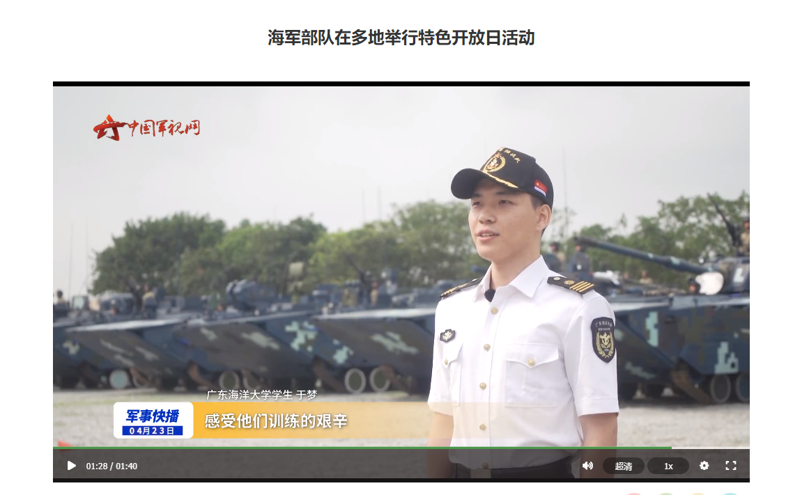 半军管副大队长刘抒睿、江涛、组织员杨捷、辅导员张佳宁等90余名师生参加了人民海军成立74周年军营开放日系列活动,近距离感受国防和军队建设新成就。