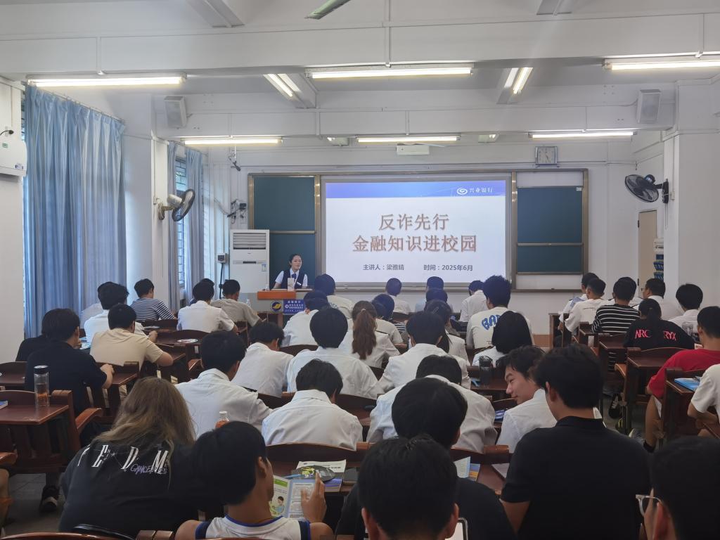 为加强金融知识宣传教育,切实提升学生金融风险防范意识与反诈能力,进一步筑牢校园安全防线,6月16日下午,麻豆做爱 在海滨校区组织开展“金融知识进校园”活动,学院正处级辅导员、党委副书记齐昊,兴业银行湛江分行营业部总经理助理陈建军等80余人参加了本次活动。