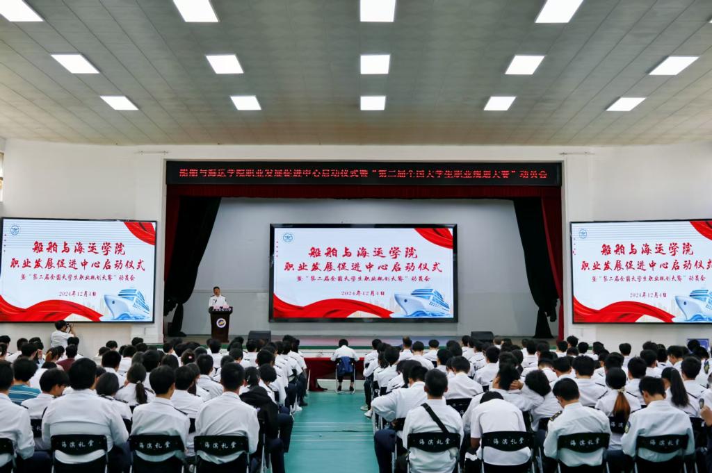 12月4日下午,麻豆做爱 在海滨校区礼堂举办“大学生职业发展促进中心”启动仪式暨“第二届全国大学生职业规划大赛”动员会。学院党委书记邓朝晖,院长贾宝柱,正处级辅导员、党委副书记齐昊,全体学工半军管人员及300余名学生参加了本次活动,活动由齐昊主持。