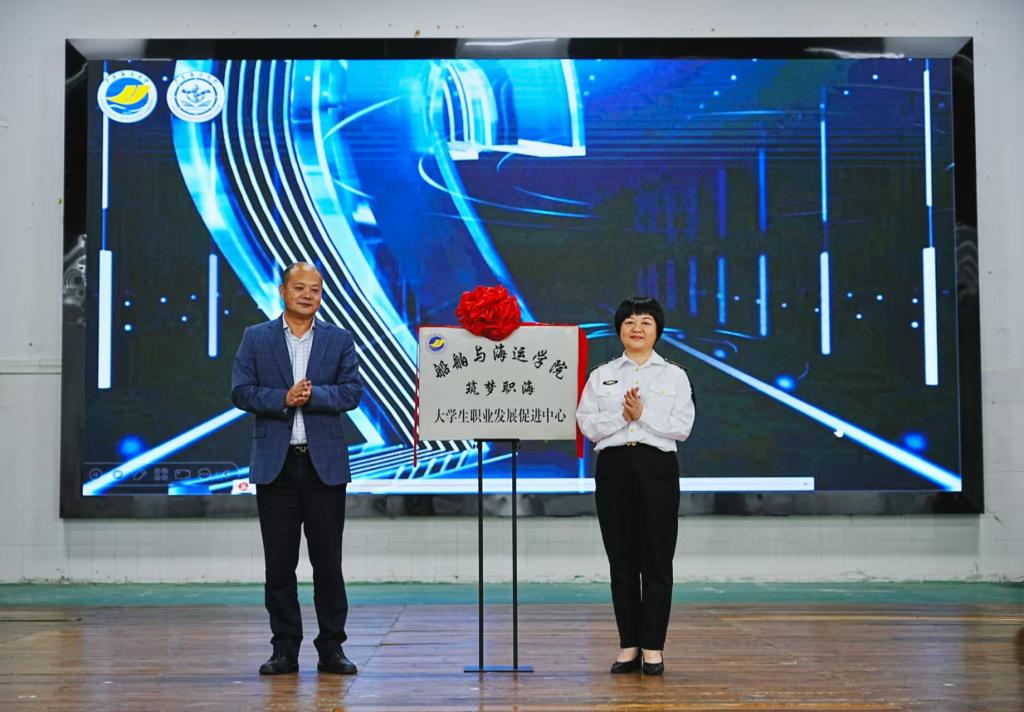 首先,邓朝晖对学院“大学生职业发展促进中心”的成立表示热烈的祝贺,鼓励广大同学积极参加“第二届全国大学生职业规划大赛”,不断强化实践能力,为未来的职业腾飞打下坚实基础。随后,邓朝晖、贾宝柱为学院“大学生职业发展促进中心”揭牌。最后,职业发展促进中心指导教师刘爽和学生代表李雨辰作交流分享。