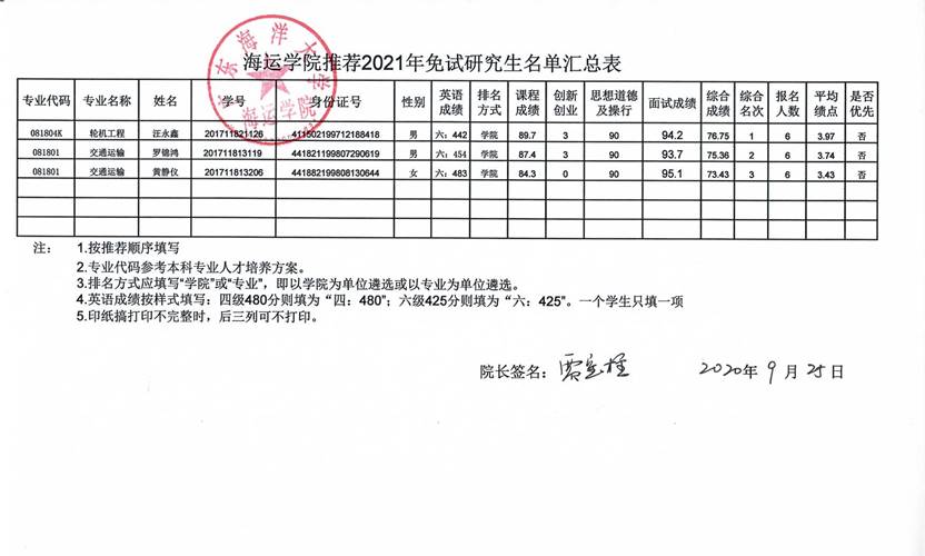 附件:海运学院推荐2021年免试研究生名单汇总表