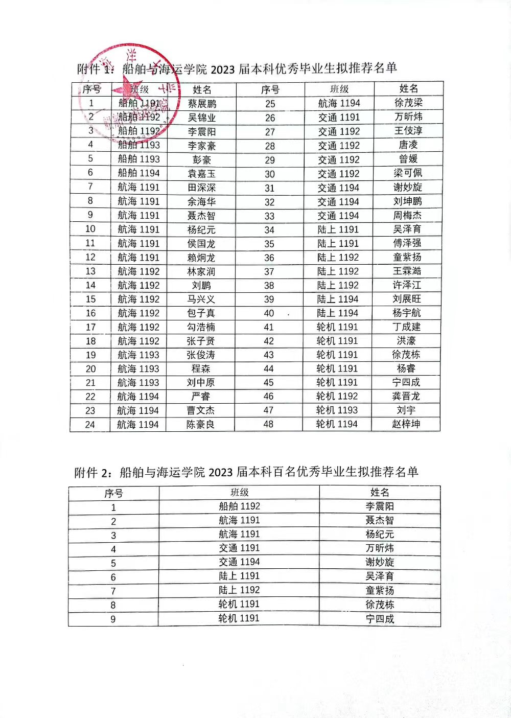 2023届全日制本科百名优秀毕业生,详见附件1、附件2。现将结果予以公示。