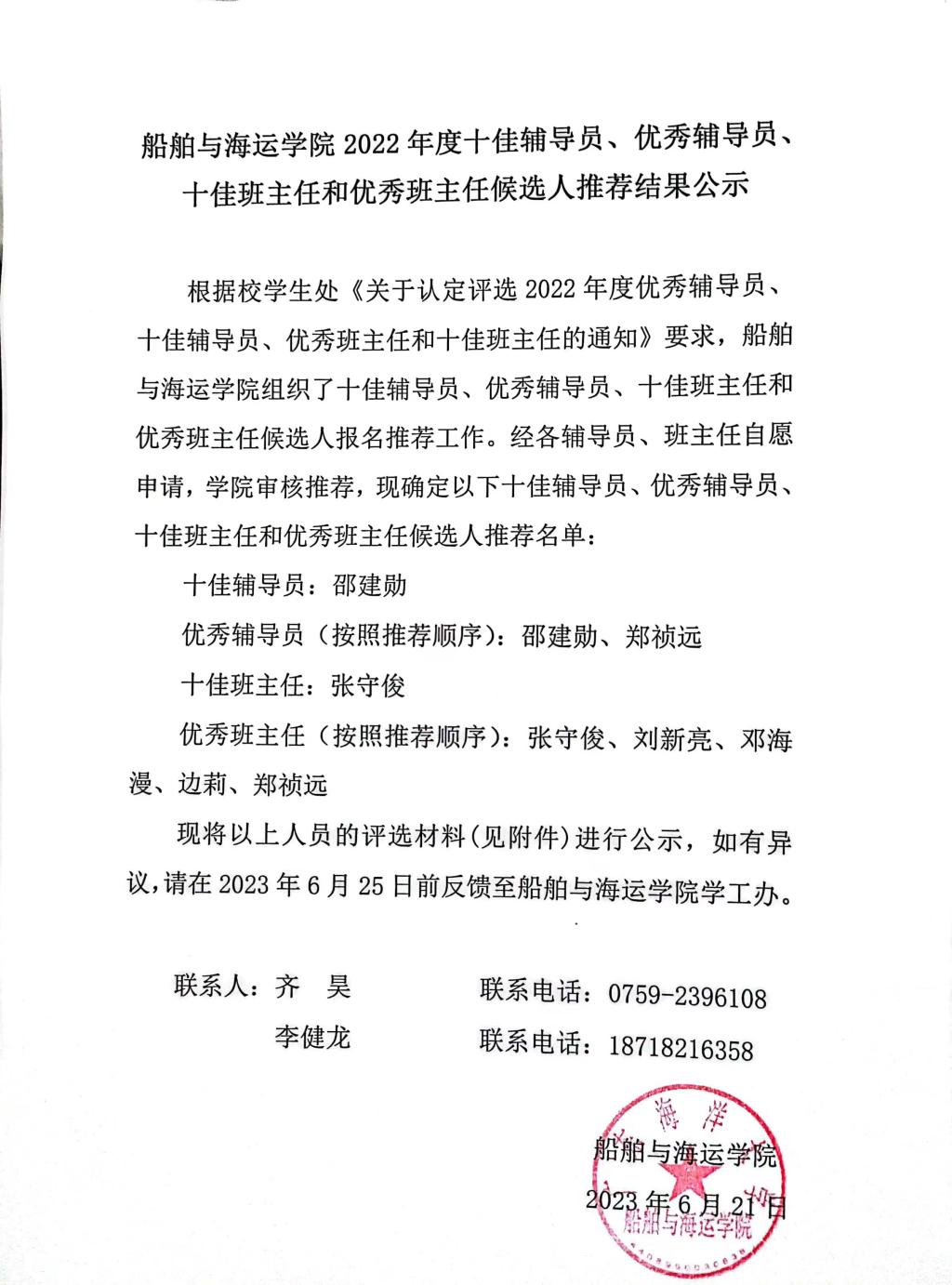 麻豆做爱 2022年度十佳辅导员、优秀辅导员、十佳班主任和优秀班主任候选人推荐结果公示