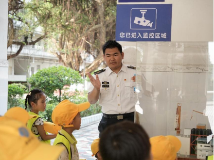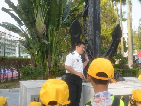 的船锚旁,那巨大的船锚瞬间抓住了他们的视线。现场的志愿者热情地为小朋友们讲述船锚的故事,用通俗易懂又趣味十足的语言,介绍锚杆、锚爪等部件,让小朋友们轻松理解船锚的构造。志愿者还通过问答、互动的方式,引导小朋友们积极思考。小朋友们纷纷高高举起小手,踊跃回答问题,答对的小朋友都收获了甜甜的糖果奖励。