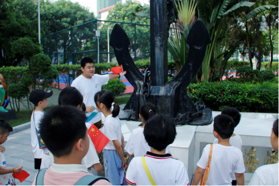 活动伊始,同学们来到了学院标志性的船锚雕塑前。志愿者们化身知识使者,用生动形象、通俗易懂的语言,为同学们详细介绍了船锚的作用及其工作原理。小朋友们听得津津有味,当了解到船锚竟是万吨巨轮在大海中稳如磐石的“刹车”时,眼中闪烁着好奇与惊叹的光芒,仿佛在那一刻,他们与神秘而广阔的海洋拉近了距离。